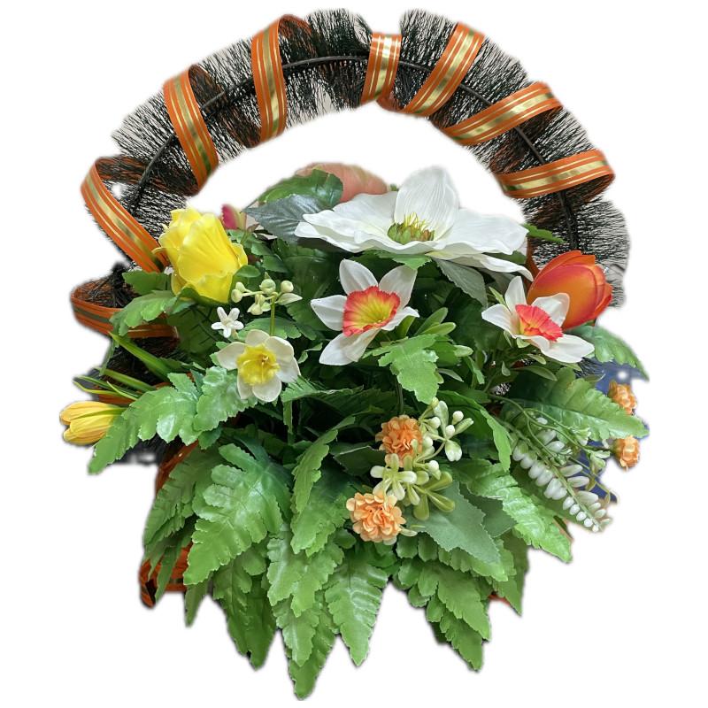 В выборе вида и размеров изделия можно руководствоваться степенью близости к усопшему. На похороны принято приносить венки. Часто близкие люди выбирают не традиционный венок, а венок в виде корзины из искусственных цветов.